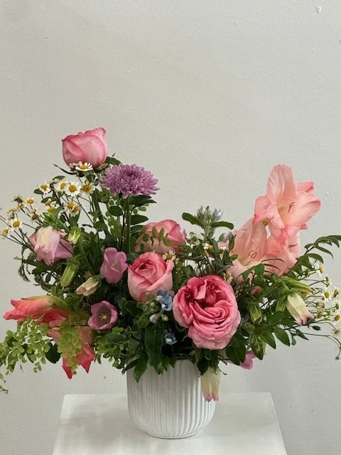 Each floral arrangement is created specifically for you so no two are exactly alike. Bloom selections change daily based on seasonality and availability so while we cannot guarantee specific flower varieties and exact colors, we do guarantee your specific arrangement will be fresh and beautiful.