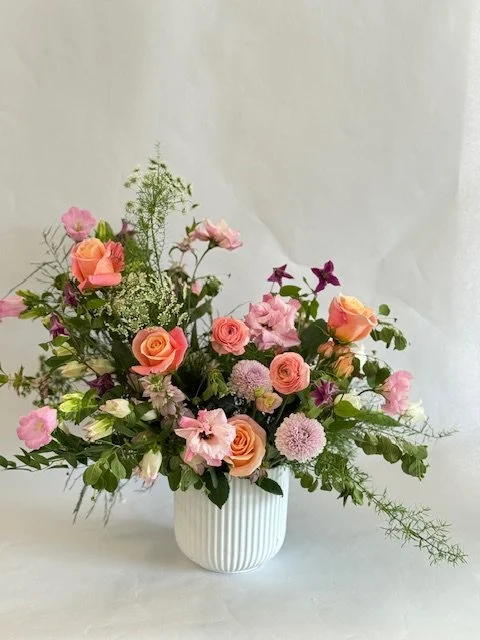 Classic dozen rose arrangement with a modern twist. Arrangement features 12 roses artfully arranged with smaller blooms and greenery. Perfect for the love in your life.